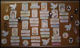 On the School Day of Peace we have decorated our English Corner with Nelson Mandela pictures and information about his biography in the three languages our kids study: English, Spanish and French. Last year we paid tribute to other important people who have worked for peace and their quotes. The school year 2011/12 we decorated our corner with peace-related words and symbols.